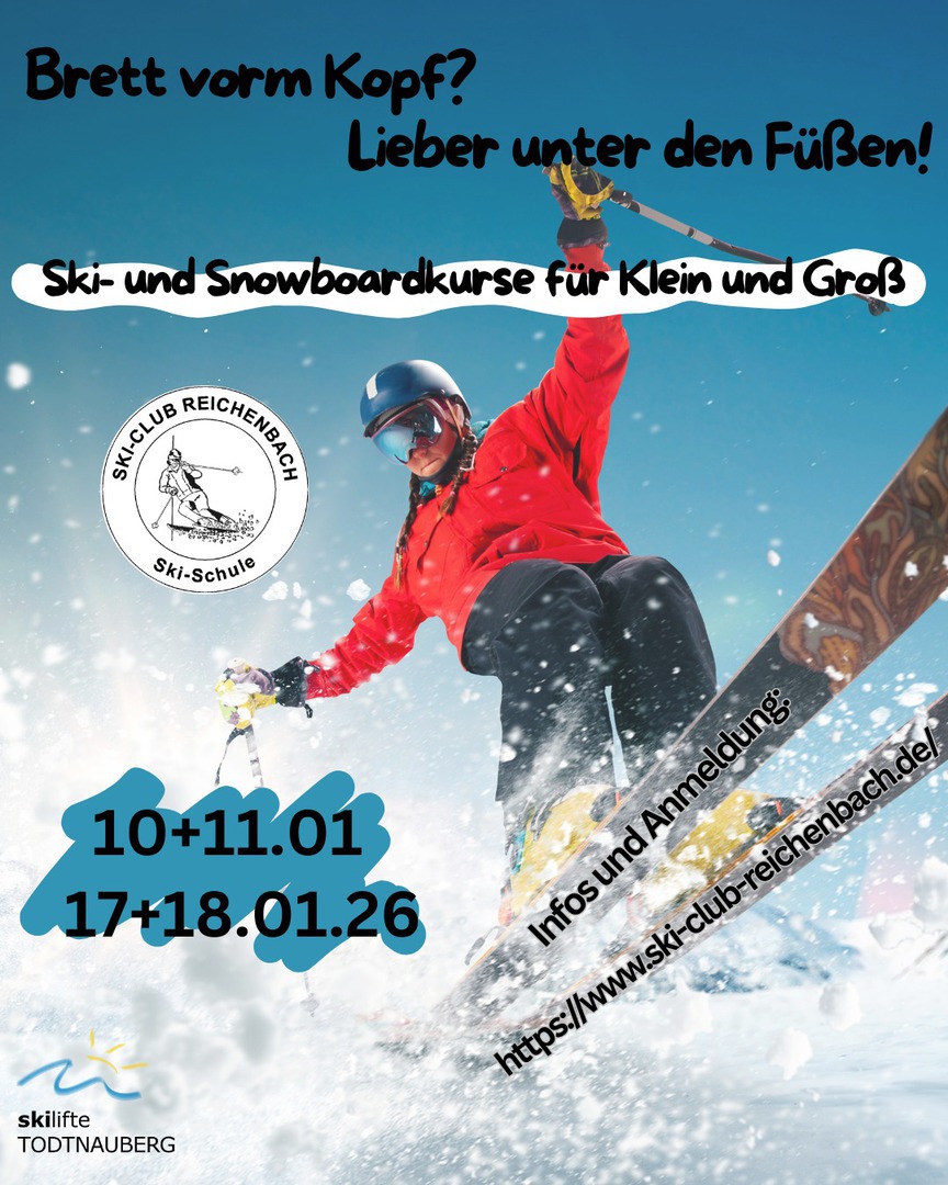 Ab dem Brettlemarkt sind auch ausschließlich über das Anmeldeformular auf unserer Homepage Anmeldungen zu den Ski- und Snowboardkursen (10./11. und 17./18. Januar 2026) möglich.